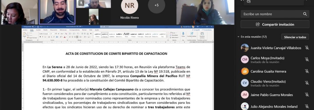 Con el objetivo de dar cumplimiento a la Ley 19.518, artículo 13, del del Ministerio del Trabajo, hoy 28 de junio de 2022, en reunión vía teams se ha procedido a la conformación del Comité Bipartito de Capacitación, el cual tendrá por funciones acordar y evaluar el o los programas de capacitación ocupacional de la empresa, así como asesorar a la Compañía en materias de capacitación.
