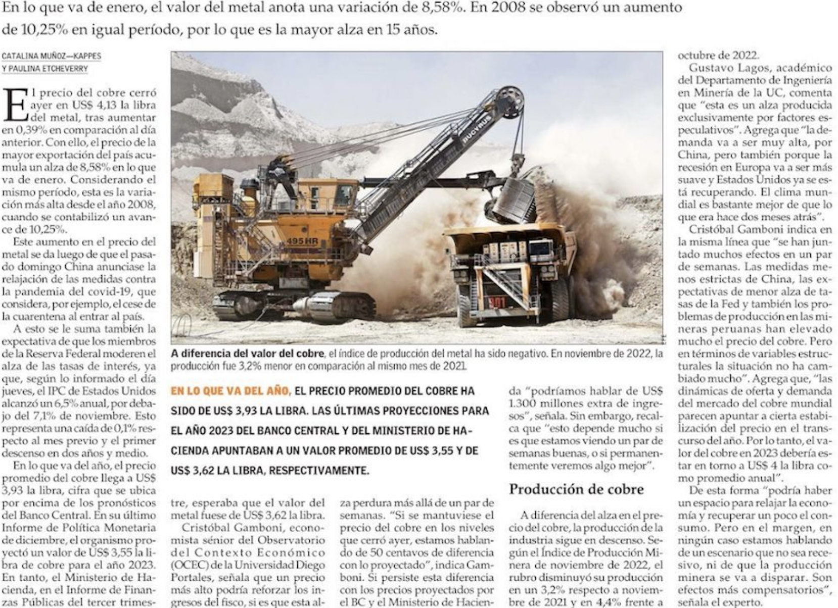 La producción de cobre en Chile, el mayor productor mundial del metal, cayó un 5,5% interanual hasta las 459.229 toneladas en noviembre, según informó el viernes el Instituto Nacional de Estadísticas (INE).