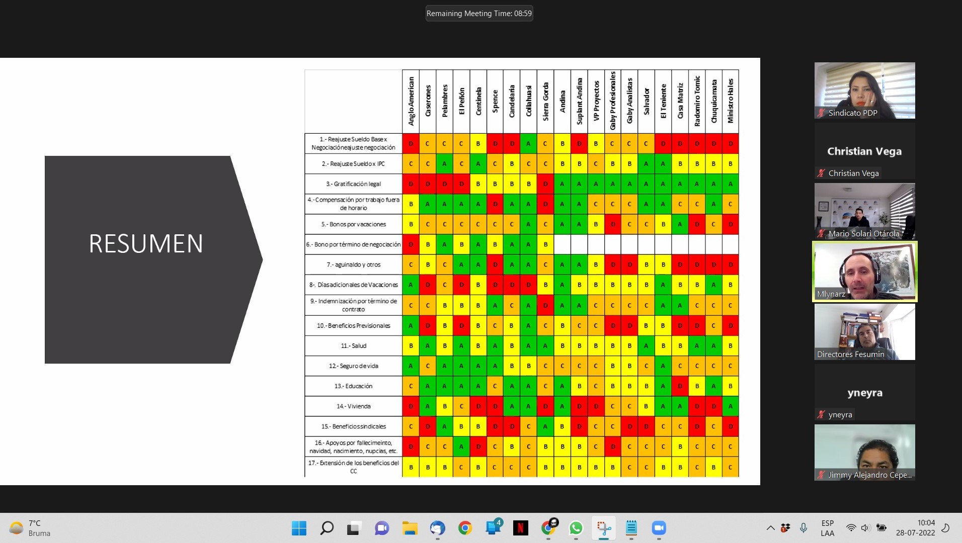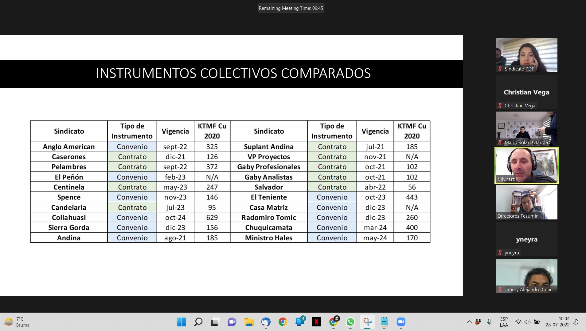 El encuentro se efectúo este jueves 28 de julio de manera virtual y contó con la participación en pleno de las directivas de ambas organizaciones. La reunión tuvo el objetivo de conocer a FESUMIN, su trabajo y objetivos en el corto, mediano y largo plazo, con la intensión de evaluar un eventual ingreso de nuestro sindicato a esta federación.