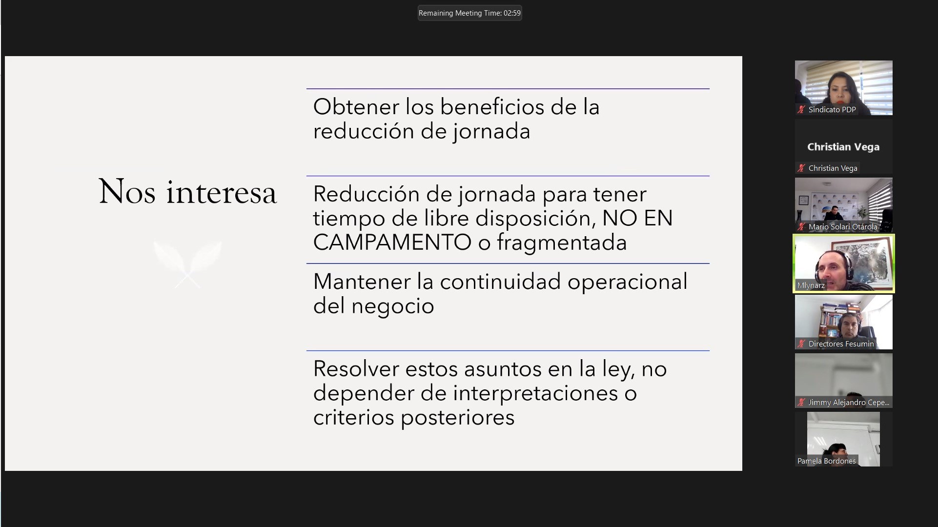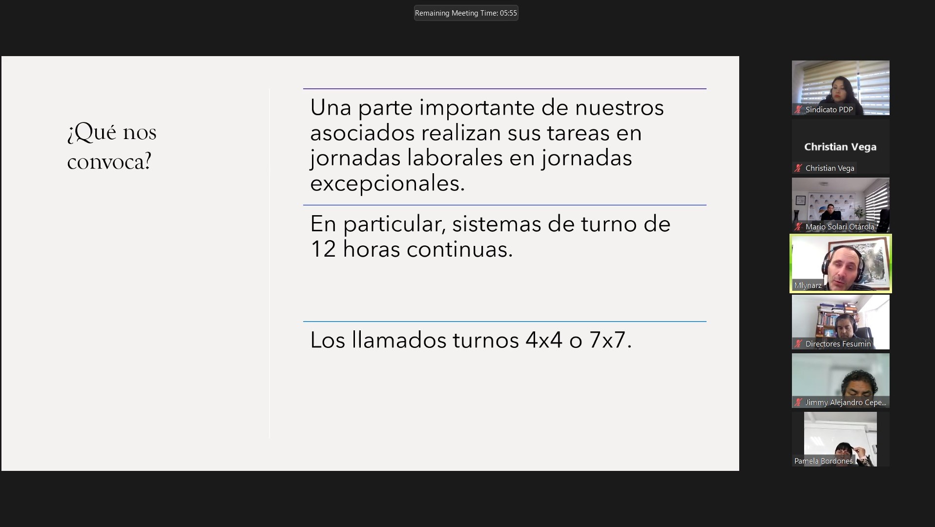 Durante la reunión nuestra directiva pudo conocer de cerca el trabajo de Fesumin, se explicaron a lo menos 4 campos que actualmente gestionan: 40 horas laborales, ratificación del convenio 176 de la OIT, equidad de género, proceso de automatización en minería, entre otros.