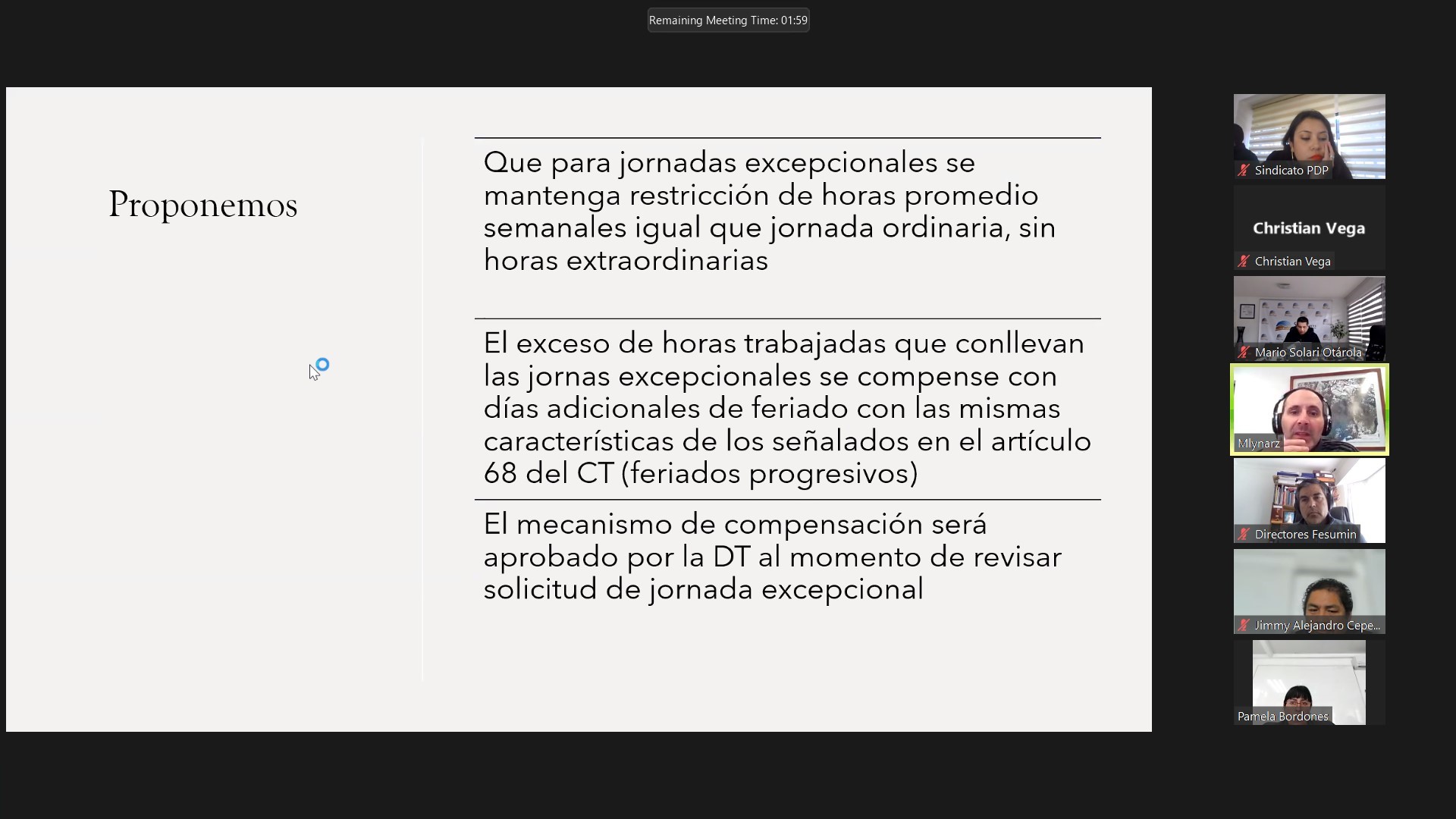 El director de estudios Fesumin Iván Mlynarz (Los Bronces-Angloamerican), se encargó de exponer acerca de los distintos estudios que han realizado, analizando la gestión del supervisor. Además, expuso un estudio comparado de las distintas negociaciones colectivas del sector Supervisor en el campo minero.
