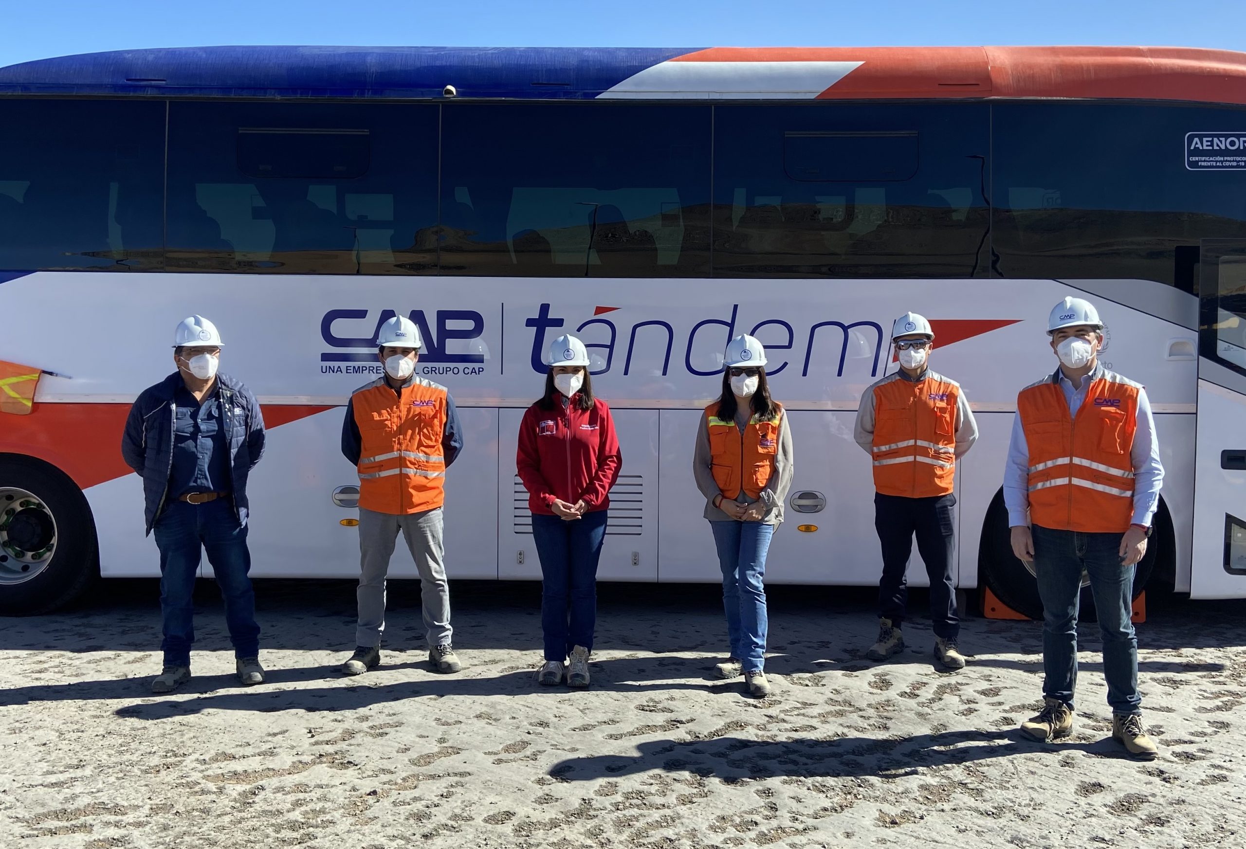 Dirigentes del Valle de Elqui y Copiapó del Sindicato PDP participan de ceremonia de lanzamiento de programa piloto de dos buses que trasladaran trabajadores desde mina Romeral y mina Cerro Negro Norte hasta sus casas.