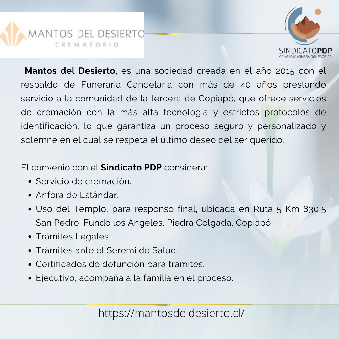 Ejecutivo de Contacto: Srta. Luna De Miranda N. Mail: luna.demiranda@mantosdeldesierto.cl Cel +56 9 3905 2423